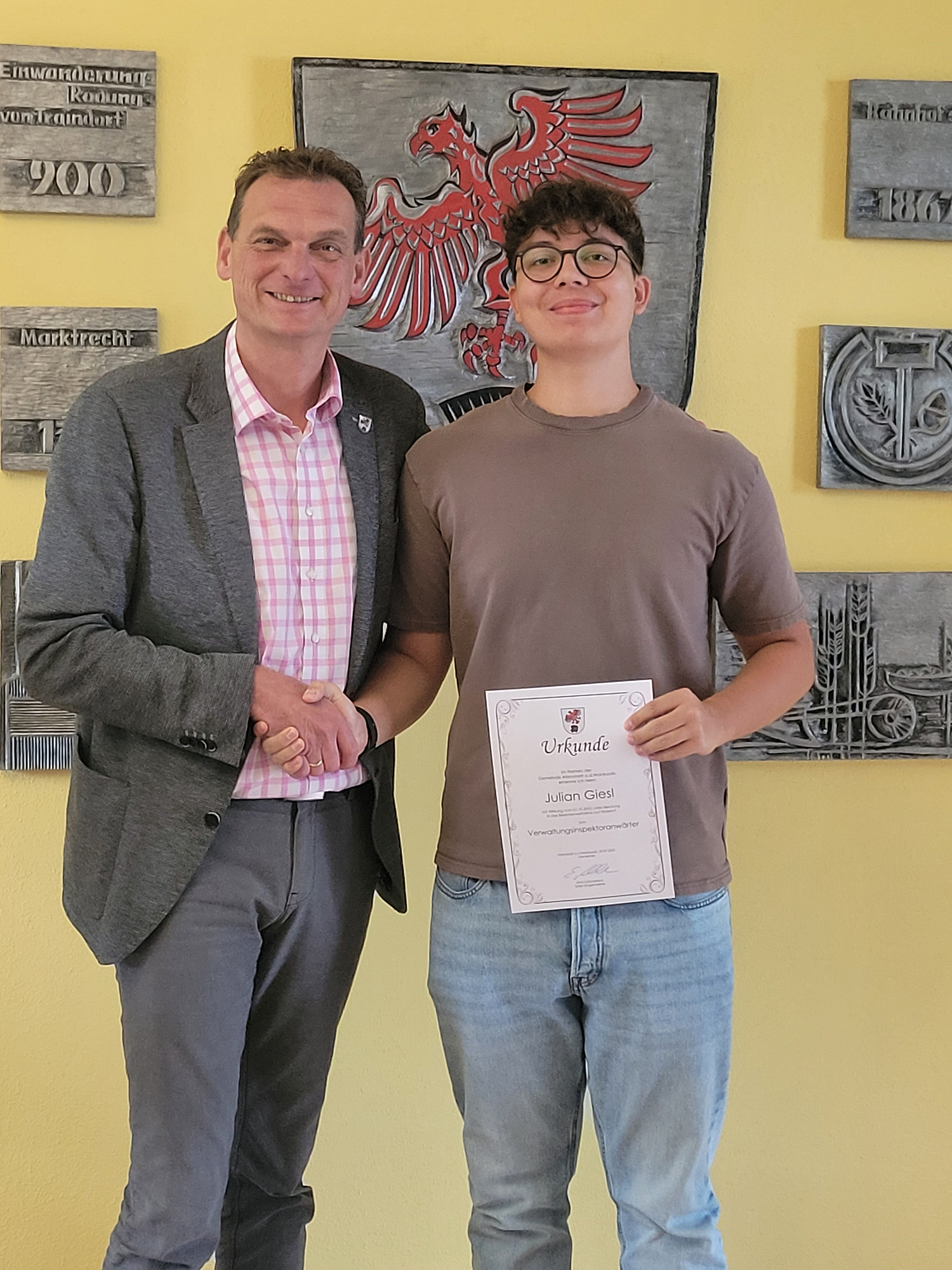 Herr Giesl durchläuft in seiner Anwärterzeit alle Ämter des Rathauses und wird in den kommenden drei Jahren zum Verwaltungsinspektor ausgebildet.