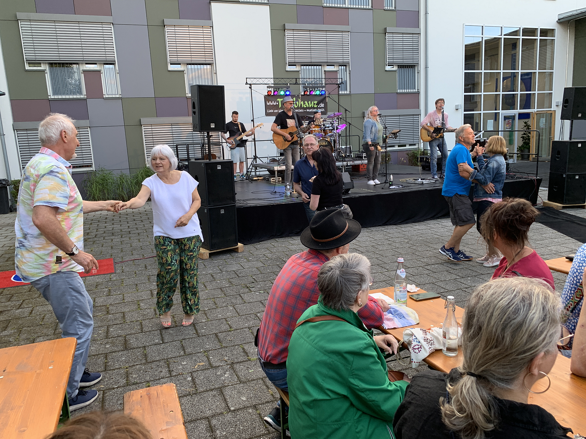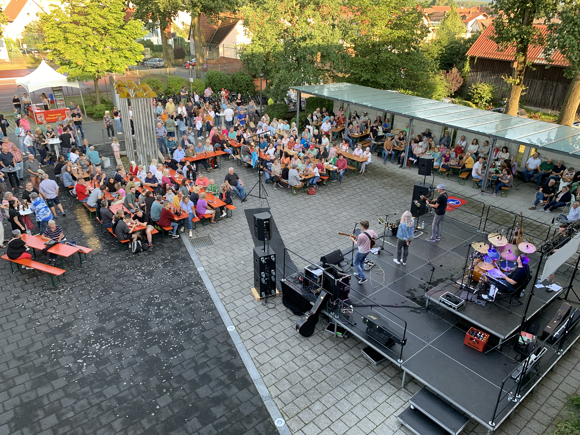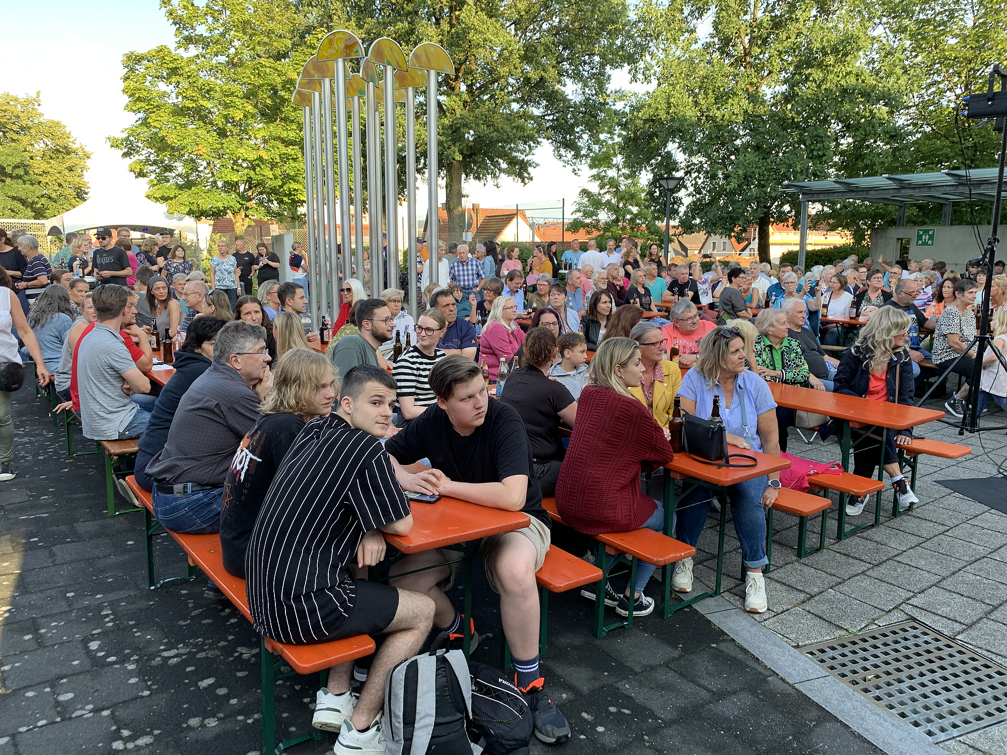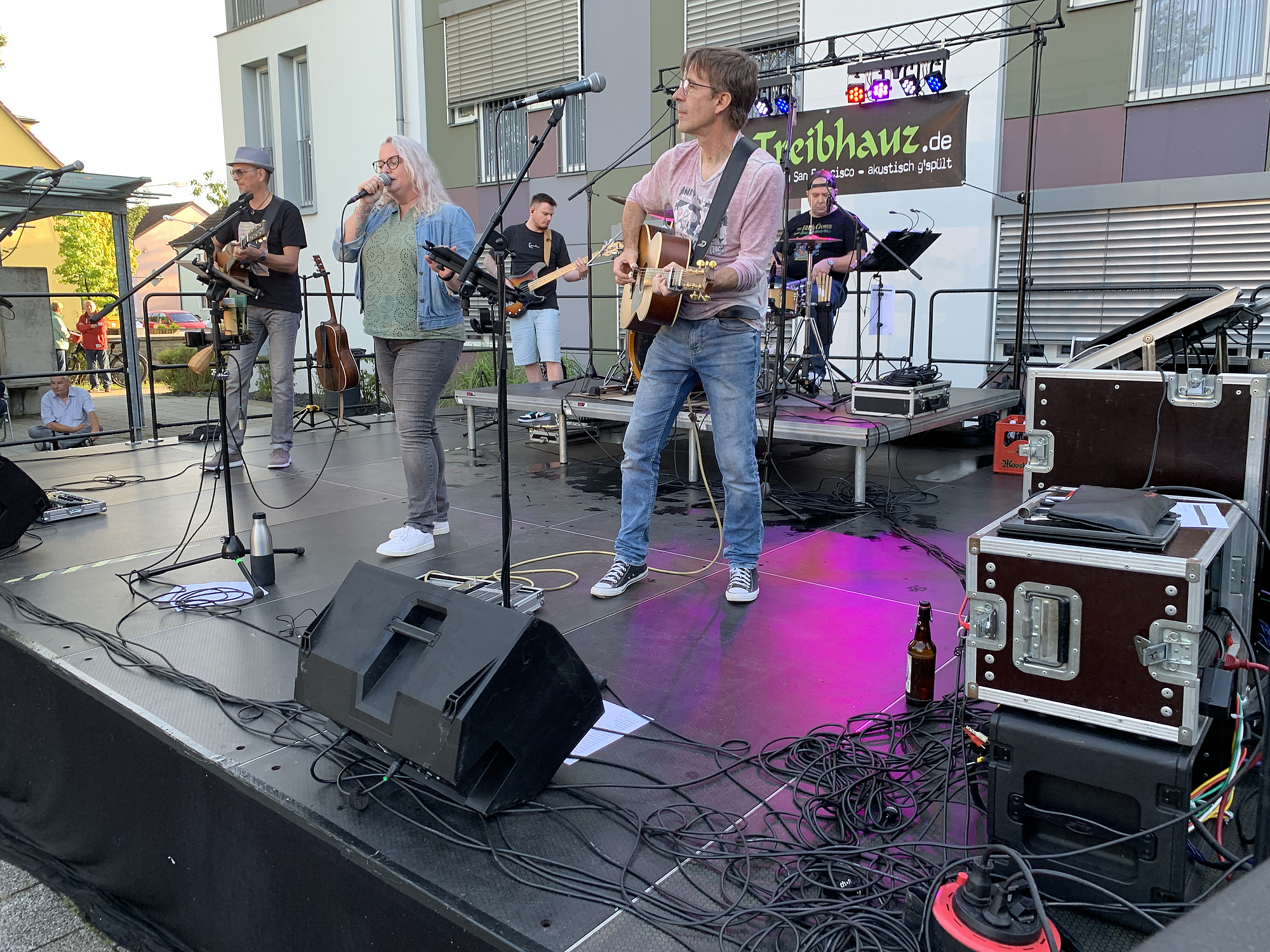 Einen tollen Serenadenabend bereitete die Gruppe Treibhauz aus Kemnath den über 350 Serenadenbesuchern am Dienstagabend auf der Piazza am Rathaus. Nach dem Gewitter und längeren Stromausfall stand die Veranstaltung noch auf der Kippe. Doch kurz nach 19 Uhr konnte die in diesem Jahr bisher am besten besuchter Serenadenabend beginnen. Sängerin Manuela Brand, Schlagzeuger Florian Baier, Gitarrist Andreas Demleitner, Frontmann Sänger und Gitarrist Armin Karwath und Gitarrist Leon Karwath zogen die Serenadenfreunde schnell in ihren Bann. Dem angekündigten musikalischen Trip von Wien bis San Francisco konnte sich keiner verweigern. Mit drei Stimmen und den Akustikgitarren verstanden die Musiker den Flair der Musik auf der Piazza zu zeigen. Von Liedern und Songs von Fendrich bis Queen über Slade, Beatles, Mama und Papas bin hin zu S.T.S und Pink Floyd reichte die musikalische Spannweite. Die prägnante Stimme von Sängerin Manuela Brand hatte an den Interpretationen großen Anteil. Der immer wieder zwischen den Lieder aufkommenden Applaus dankte der Band für ihre Darbietungen. Über den ganzen Platz sah man singende, tanzende und mitwippende Serenadenbesucher. Nach mehr als zwei Stunden waren sich die Serenadenfreunde einig, einen tollen Abend erlebt zu heben. Der Partyservice Richtmann sorgte fürs leibliche Wohl. Bei den Festdamen der Freiwilligen Feuerwehr gab es Wein und Aperol.