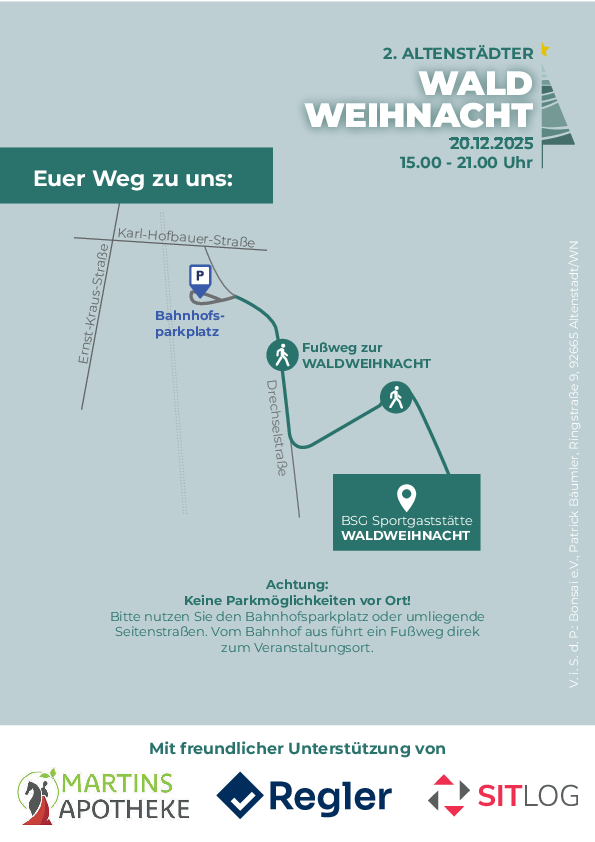 Der Verein Bonsai e.V. und die Freiwillige Feuerwehr Altenstadt laden erneut zusammen zur 2. Wald Weihnacht Altenstadt ein.