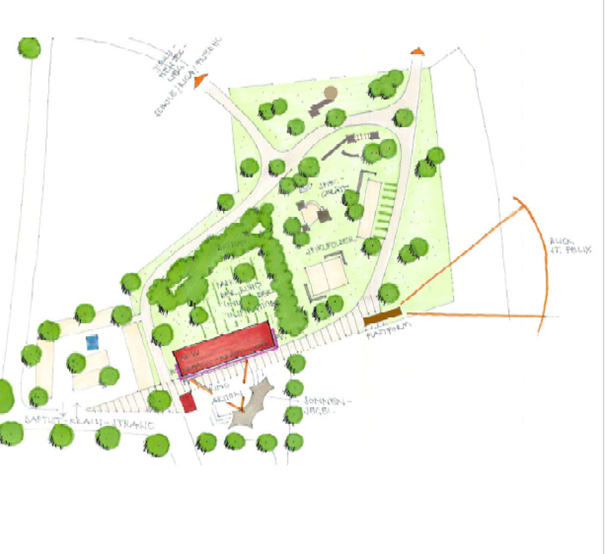 -> Geplant ist die Schaffung einer innerörtlichen, zentral gelegenen und multifunktional gestalteten urbanen Grün- und Freifläche als ein Ort für Menschen, Tiere und Pflanzen.