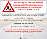 Vollsperrung des Geh- und Radwegs entlang der B22 (Bereich Kreisverkehr bis zur Abzweigung Sauerbachtal) ab Montag den 06.10.2025